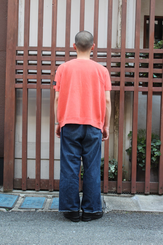 サーモンピンクのヴィンテージスウェットを繋ぎ合わせたデザイン。