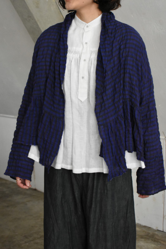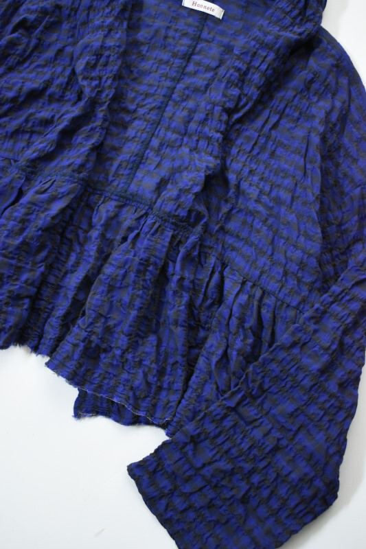 【For WOMEN】Honnete (オネット) Gather Cardy [BLACK/NAVY GINGHAM CHECK] のご紹介です。