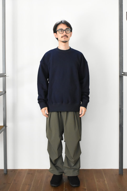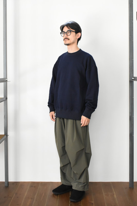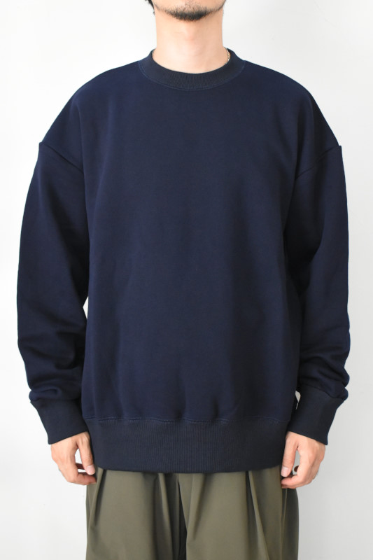 太番手の糸を度詰めで編み上げた厚みのある生地が特徴のクルーネックスウェット。