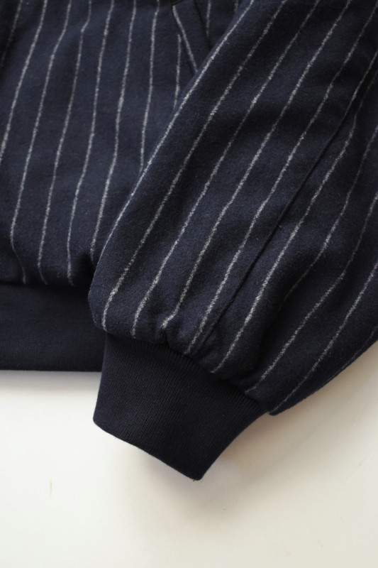 ウールポリ素材のネイビーピンストライプ、コーマコットン素材のコンビネーション。