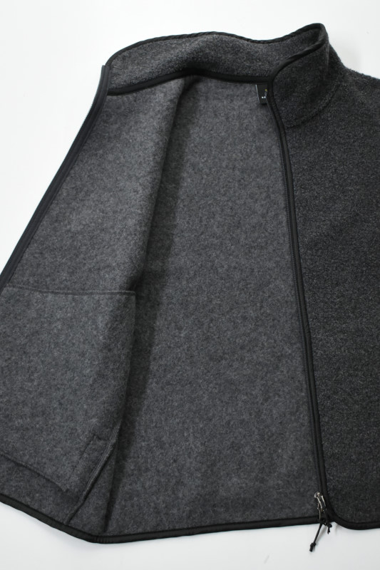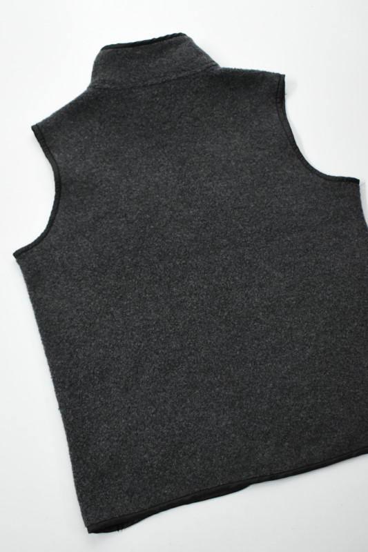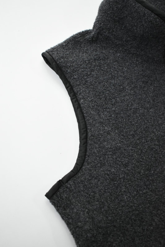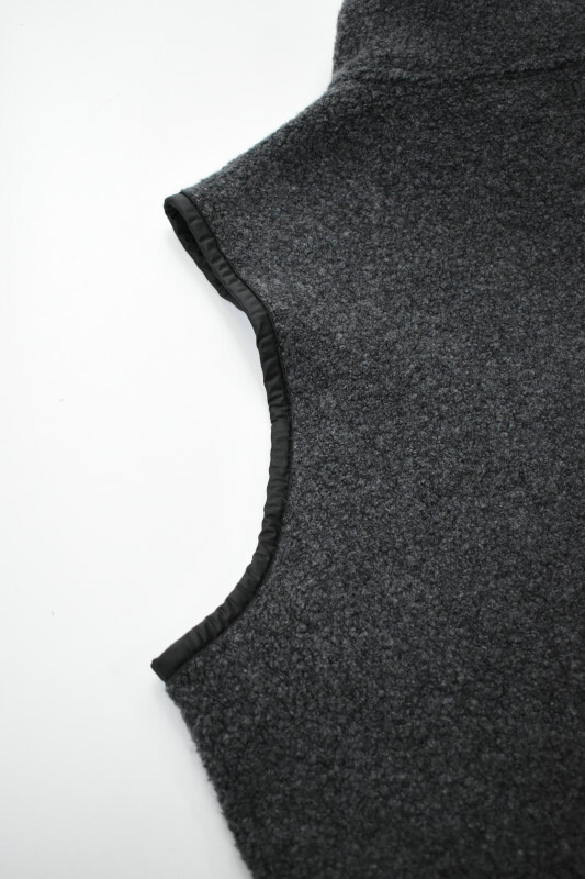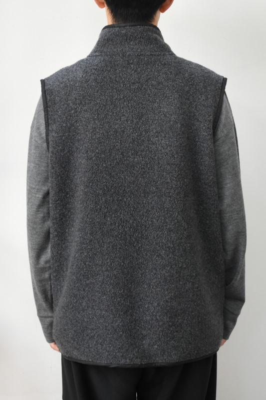 テクスチャーが際立つウールボアを使用したシンプルながら気が利いたベスト。