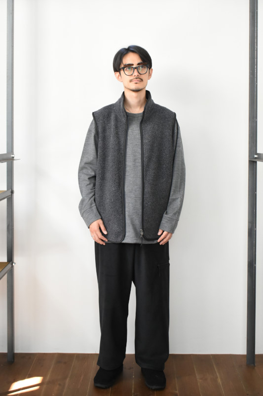 AXESQUIN -modified- (アクシーズクインモディファイド) WOOL BOA VEST [CHARCOAL]