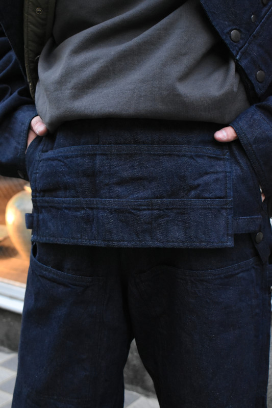 元々、オーバーオールに採用されていた仕様を、ペインターパンツにそのまま載せ替えることで生まれた独自のデザイン。