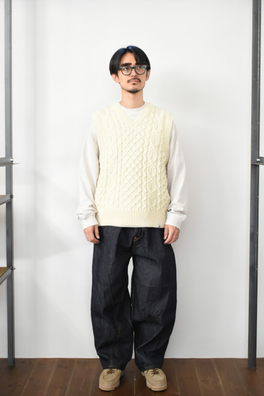 バイアスによって右綾方向に捻じれるヴィンテージジーンズからインスパイアされた "ネジレ" が最大の特徴。