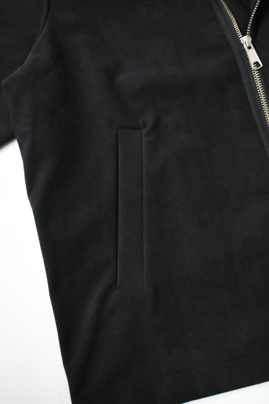 柔らかで上品な風合いがライダースジャケットのデザインと相性抜群なフェイクスエード。