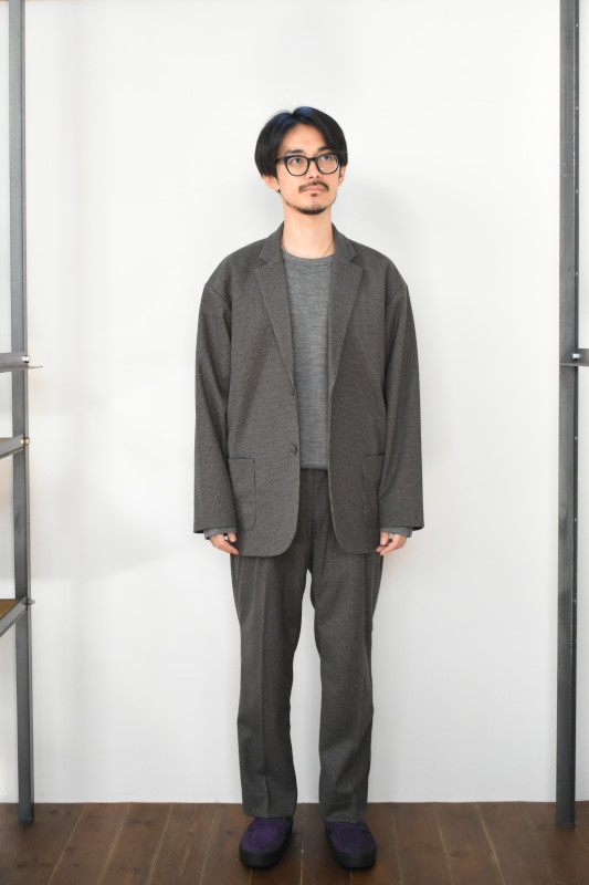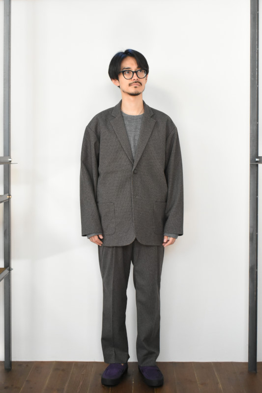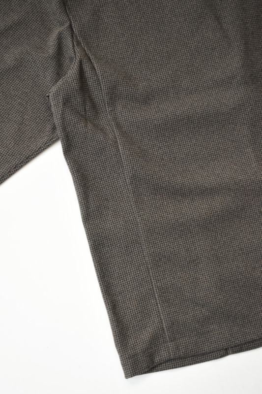 共生地の "FLISTFIA (フリストフィア) Tuck Wide Trousers [BROWN HOUNDSTOOTH]" とのセットアップでの着用もオススメです。