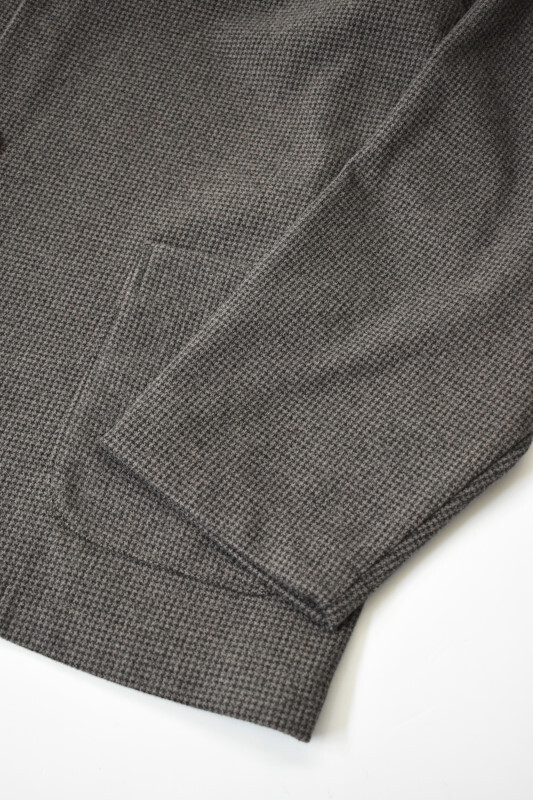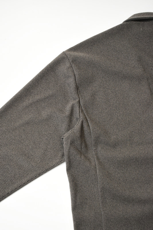 カーディガンとテーラードジャケットの中間のようなデザインで、ライニングのない一重仕様。