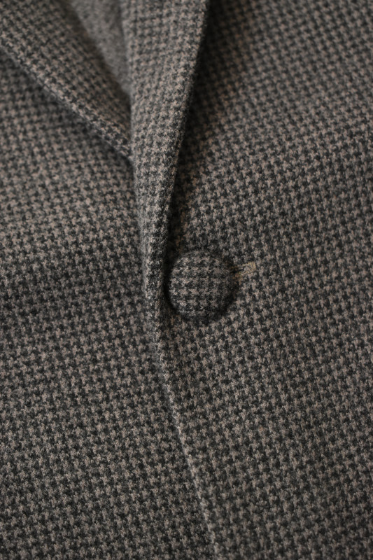小さめのラペルやシンプルな袖口の仕様、パッチポケットで程よくカジュアルな仕上がり。