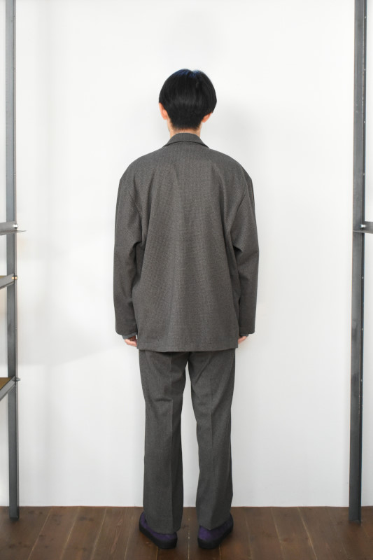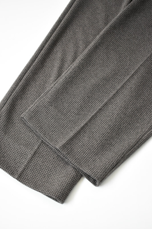 共生地の "FLISTFIA (フリストフィア) Loose Fit Jacket Cardigan [BROWN HOUNDSTOOTH]" とのセットアップでの着用もオススメです。