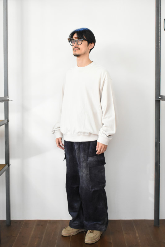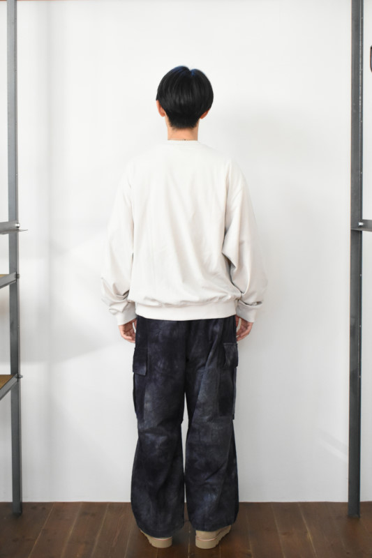 着用モデルは 172cm 60kg で Lサイズ (FREE) を着用しています。