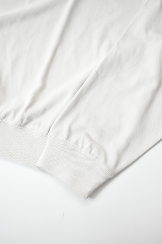 首周り、袖口、裾はリブ仕様のスウェットライクなシンプルな仕上がりで、手元に置いておきたいベーシックなTシャツです。