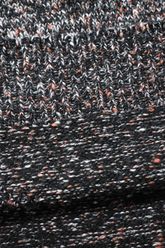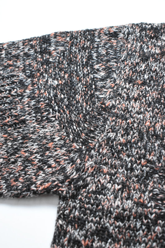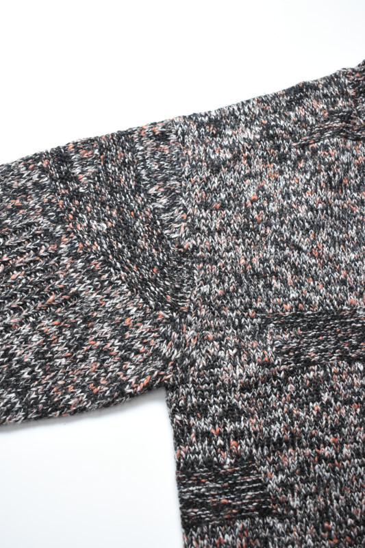 柄編みの裏目側が表に出てくるときに色の差ができ、複雑な見え方を演出しています。