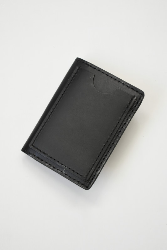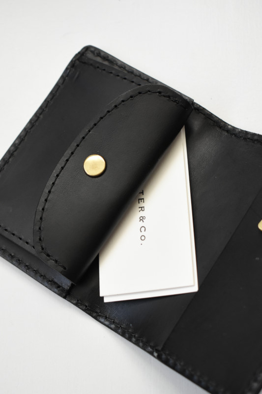 二つ折り仕様で、内側にはマチ付きのコインケース、カードホルダーをふたつ備えます。