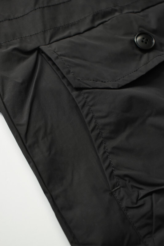 そのまま着ると膝が隠れる位のロング丈ですが、裾を中に入れてスナップで留めると短めのアウターに変身します。
