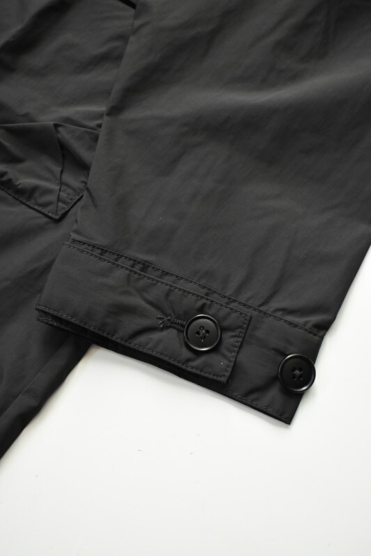袖は肘下のみの縫製でヨークから続いた1枚袖のデザインで、雨の侵入を防ぎます。