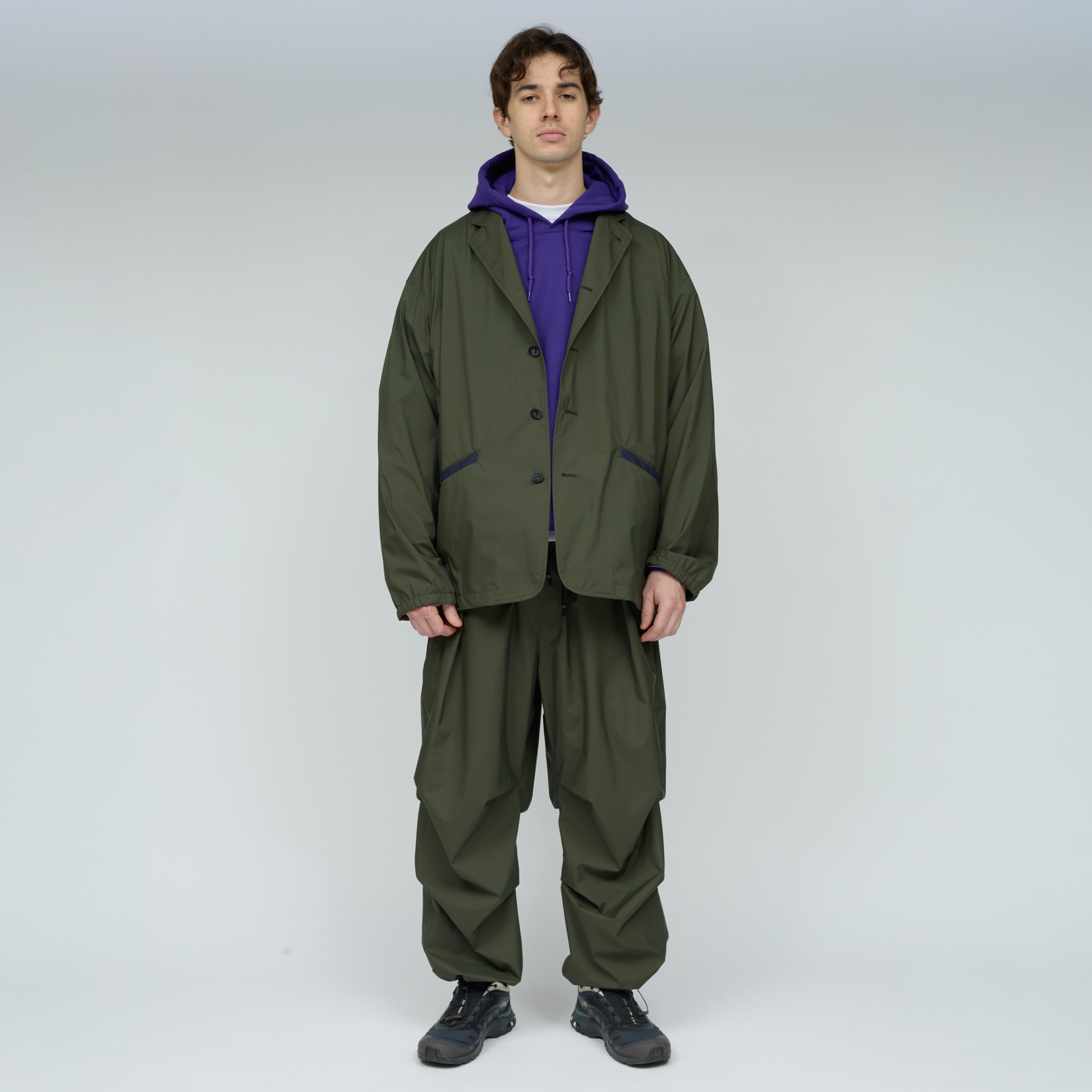 動きに応じて生まれる素材のドレープと落ち感が、テクニカルでありながらも上品な印象を与えます。