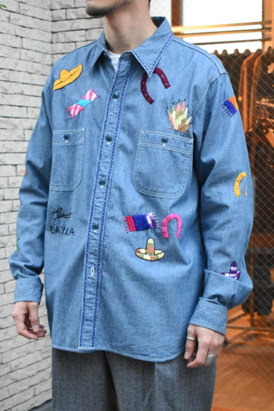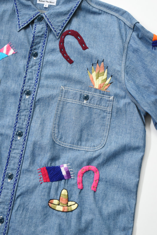 Behind The River (ビハインドザリバー) BTR×Lucy OAXACA Souvenir Chambray Shirt [BLUE/COLORFUL]