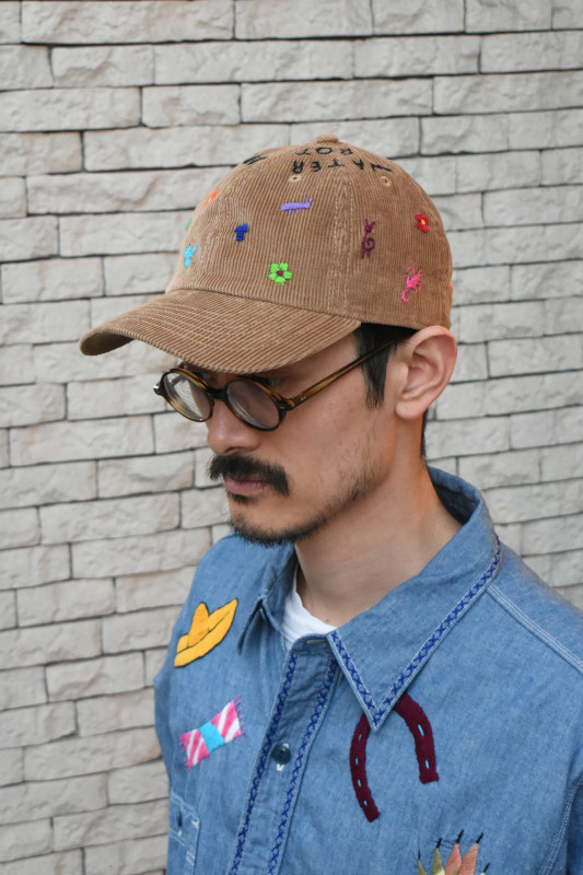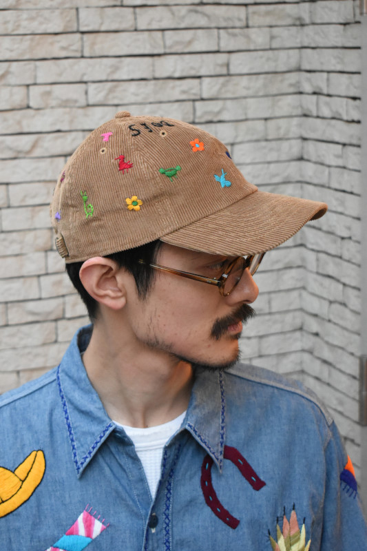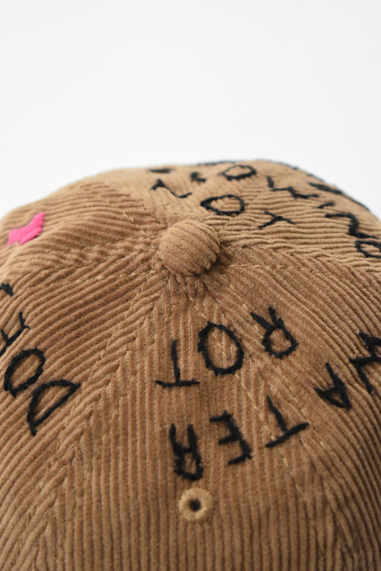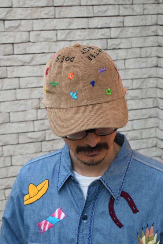 "OAXACA / オアハカ" の刺繍アーティスト Lucy による、刺繍が施されたコーデュロイキャップ。