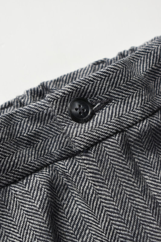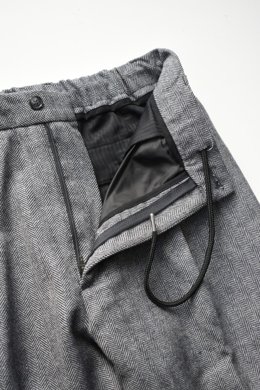 上質なウールヘリンボーンチェック素材を用いた、イージートラウザー。