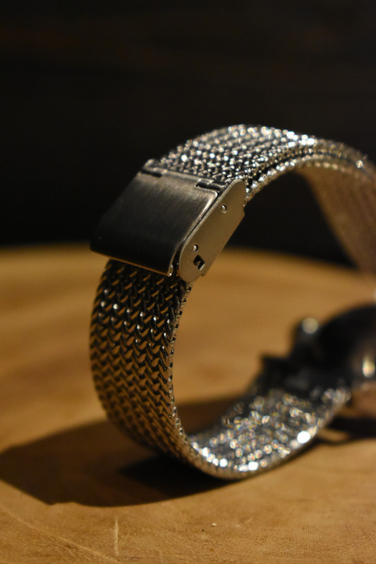 ベルトはこの時計用に作成した、麦の穂という意味の "Wheat Ear Milanese Strap" を採用。