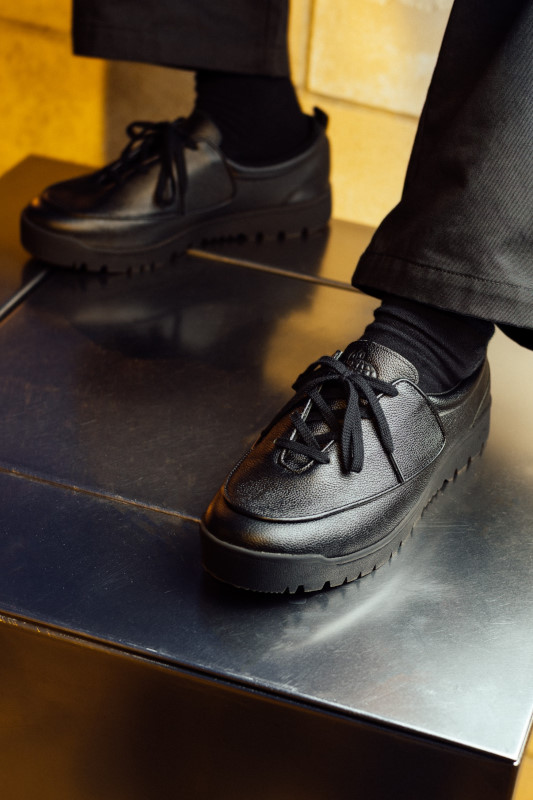 ドレスシューズのような佇まいで、中身は完全にスニーカーの構造。