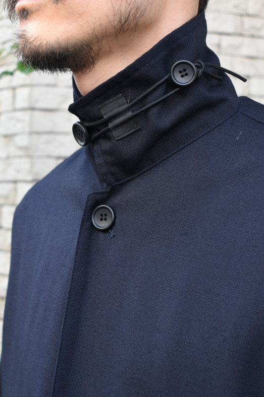 さらに、襟裏には UNTRACE オリジナルのコードループを設け、スタンドカラーとしての着用も可能に。