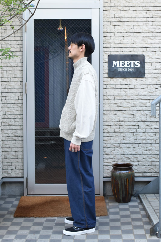 MEIAS (メイアス) LINEN MIX ZIP VEST [BLUE MIX] のご紹介です。 テクニカルなニット技術を駆使したメイアスら…
