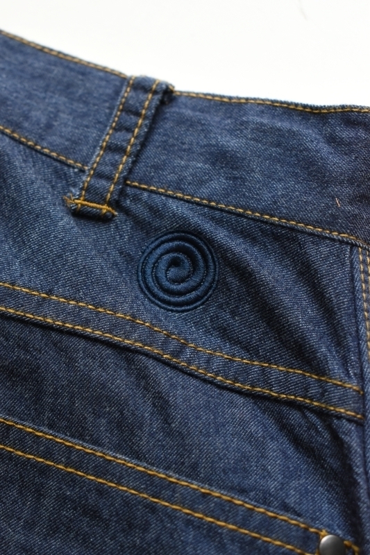 インディゴ染めのナイロンデニムを採用した、ジュゲムらしい切り口のペインターパンツ。