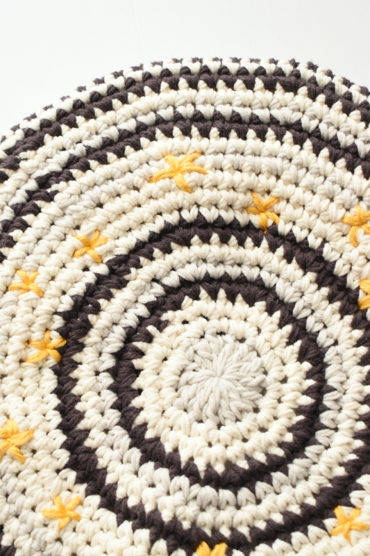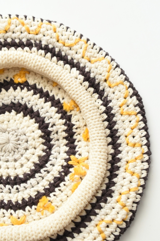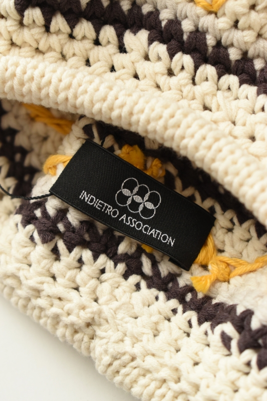 Indietro Association のハンドメイドで編み立てたマルチボーダーのニットベレー。