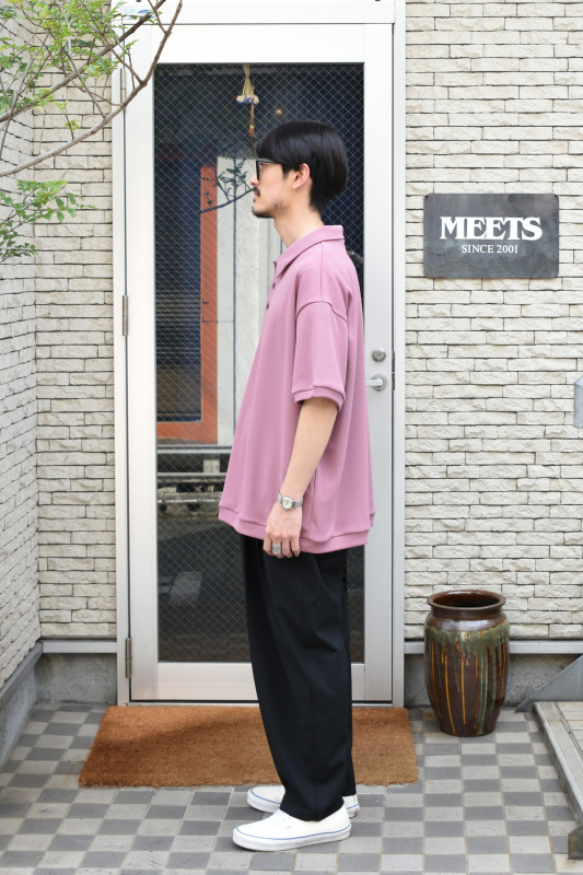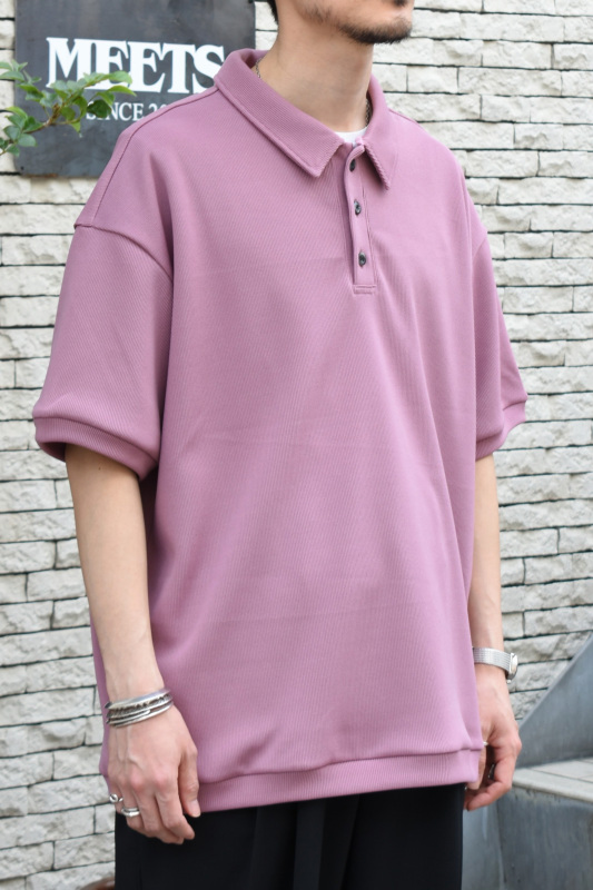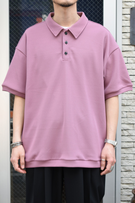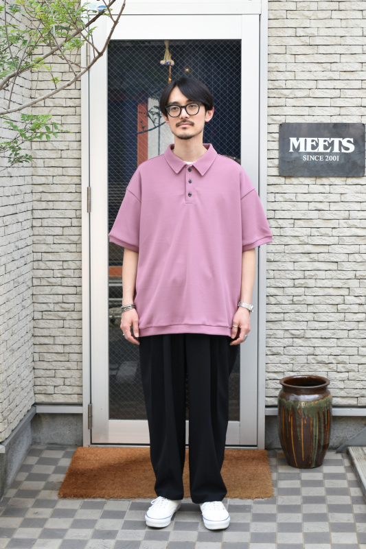 目の立った表情が特徴的なポリエステルフライスを用いて仕立てたポロシャツ。