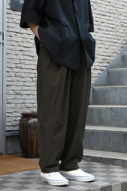 kontor (コントール) 3 Pleated Summer Wool Trousers [KHAKI]