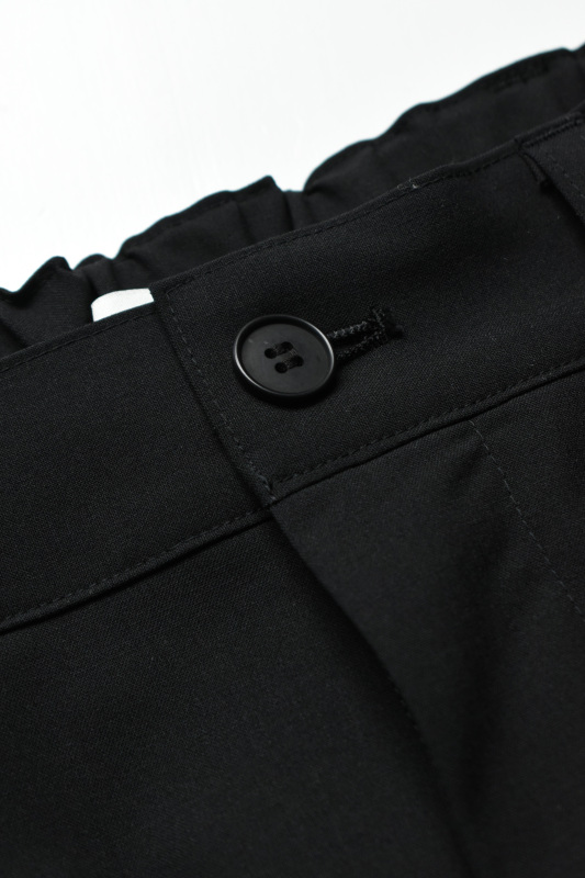 特徴的なプリーツにより太ももまわりはドレープ性に優れ、裾に向かってゆるやかにテーパードしております。