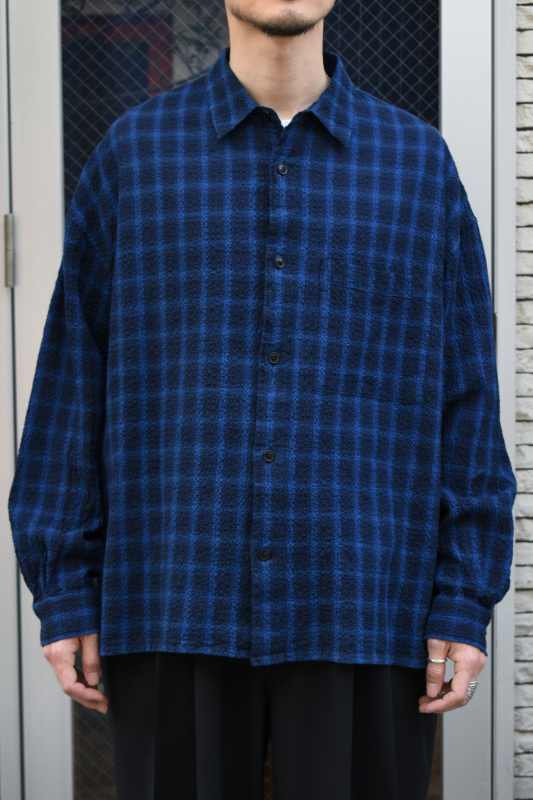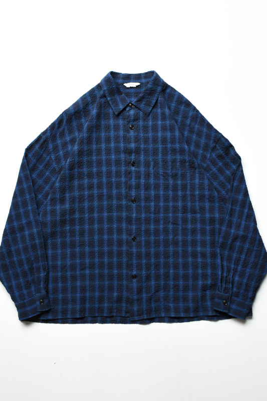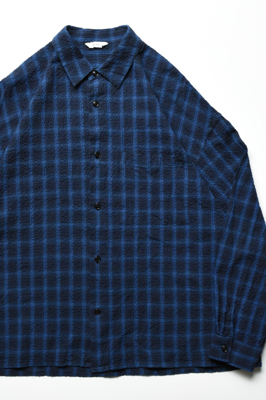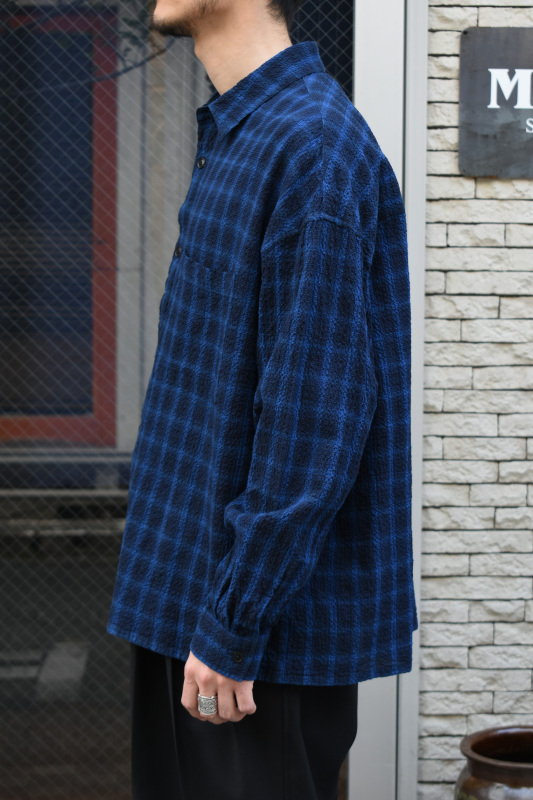 kontor (コントール) Overdyed Seersucker Check Shirt [BLUE CHECK]