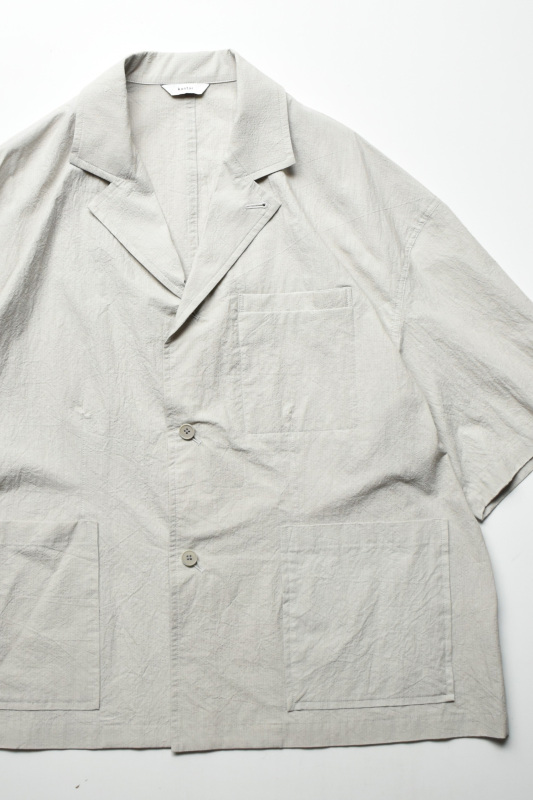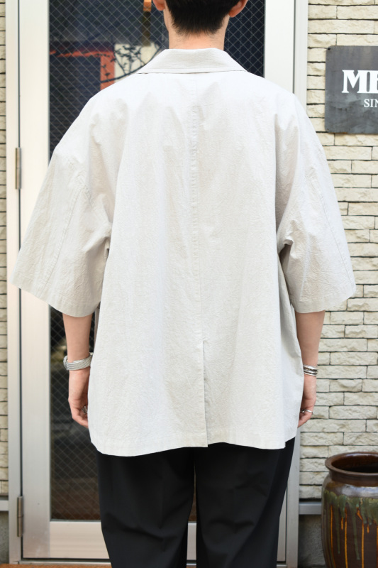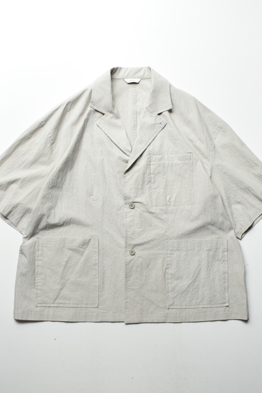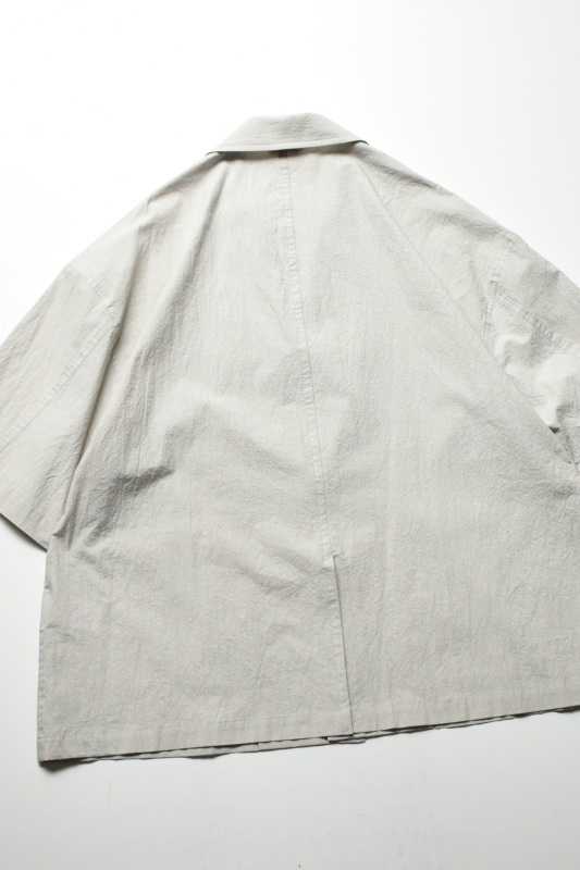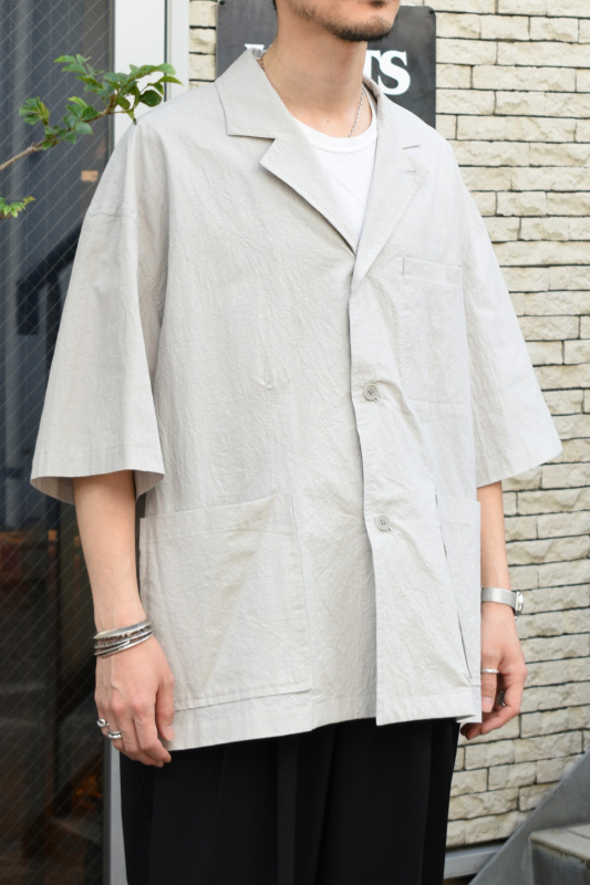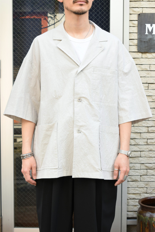 ゆったりとしたシルエットの半袖シャツジャケットのような一枚。