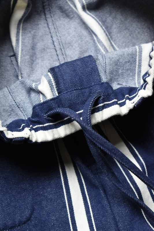 ウエストは、ゴムシャーリングと内側にドローコードを備えたイージー仕様で、リラクシンな穿き心地。