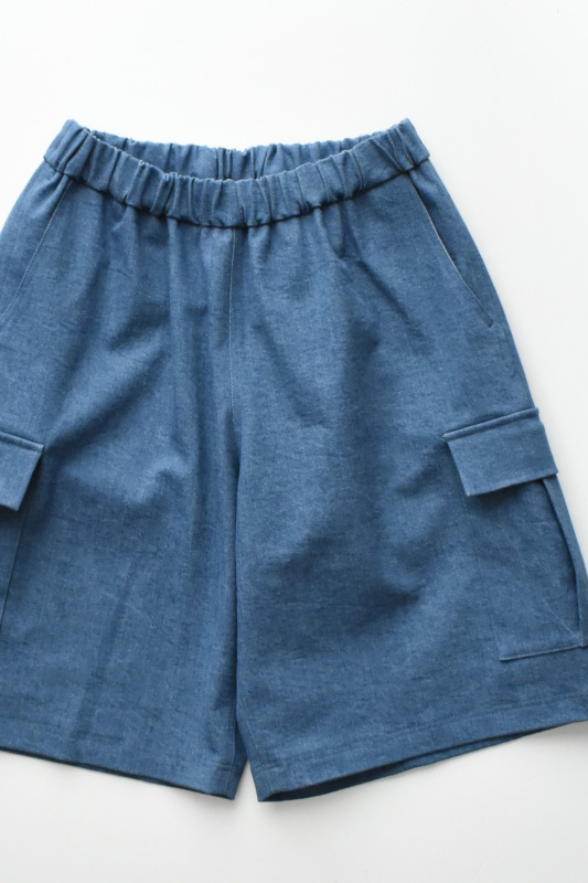 ベーシックなカーゴショーツをベースとして、ヒップ、わたり、裾にかけてワイドシルエットに。
